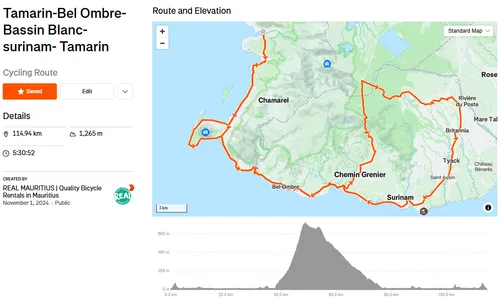 A good mix of coastal rides down south and mountain climbs. Two big climbs to look out for, Chamarel is more progressive but still challenging then take your breath along the coast line for a little while and back up what we believe to be the most challenging climb in Mauritius with some section at 15%! Then it is a gentle rolling and downhill ride back to Tamarin.